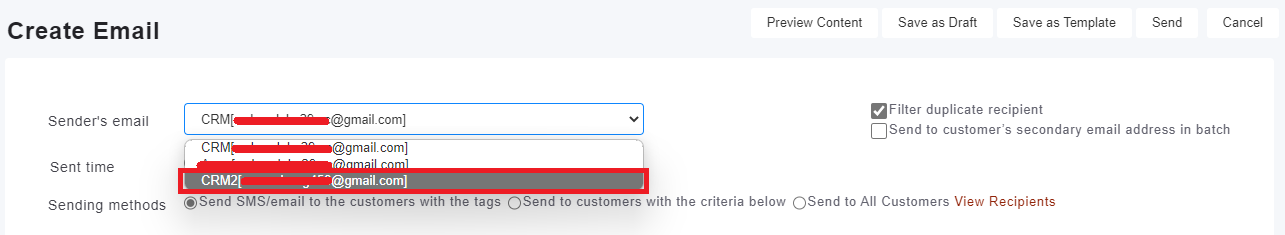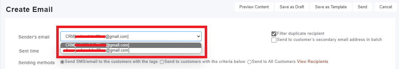 5. Go to [Email] tab, click on [Add], and choose the email from drop-down menu