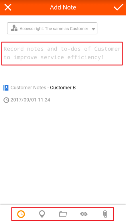 3. On the page, you can edit notes. Using the functions at the bottom, you can select "Event Date," "Location Stamp," "Note Category," "Public or Private," "Attachments," and "Tag Accounts," making your notes more comprehensive.