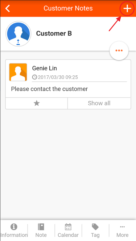 1. After selecting a customer, choose "Notes" from the list below.