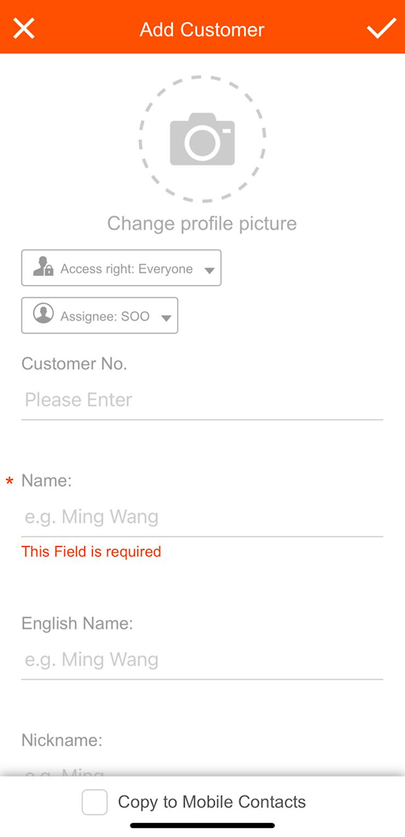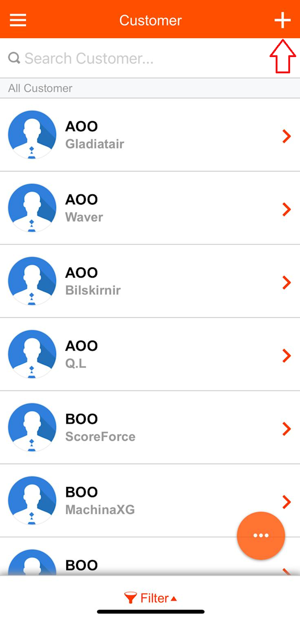 Click the "+" button in the upper right corner of the customer page to start adding customer information.