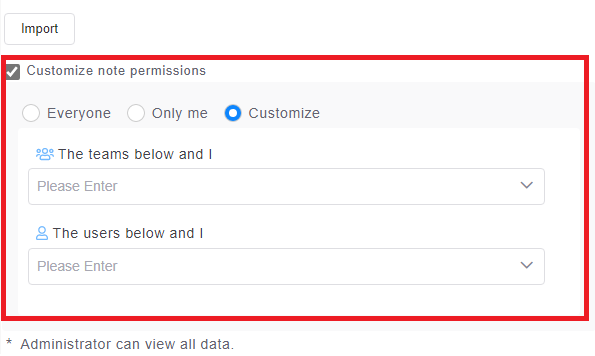 2. Under the [import] button, click [customize note permissions] to edit the note permissions.