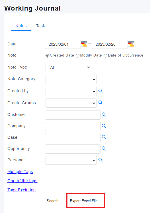 3. Export Notes: Click [Notes], enter the information you want to query, then [Export Excel File]