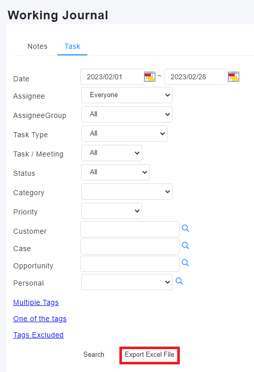 2. Export Task: Please click [Task], enter the information you want to query, after confirm then submit [Export Excel File]