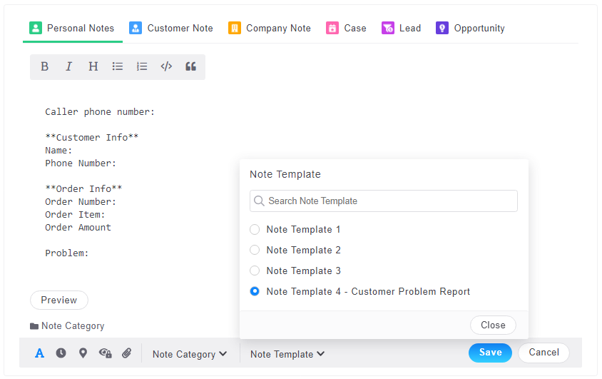 The administrator can set various note templates for the system, which can be used by users when editing notes.
