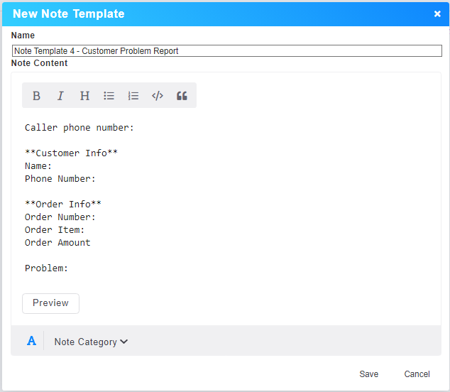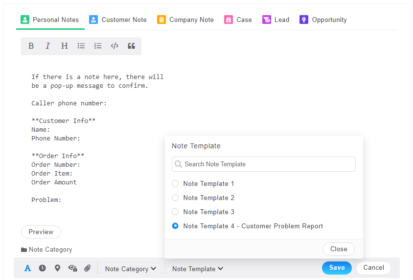 3. Click "Add" to add an available template, and you can specify the template name, note content, text format, and note type.