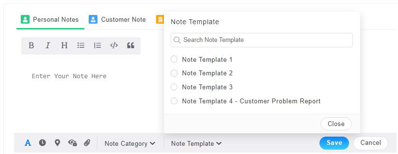 4. When adding a note, click "Note Template" to search by name
