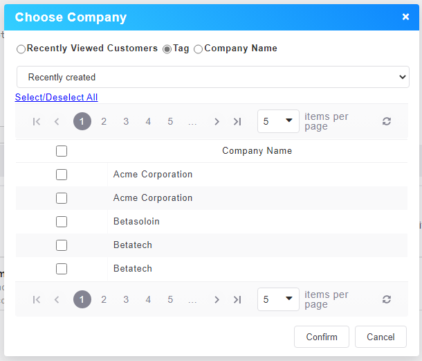 Click "Choose" to select the company and you can find the corresponding company by recent browsing history, tags, or company name.