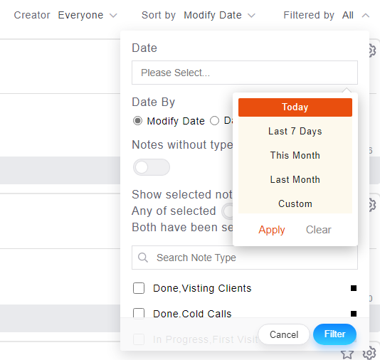 You can filter your notes by clicking [Filter > Today > Apply > Filter]