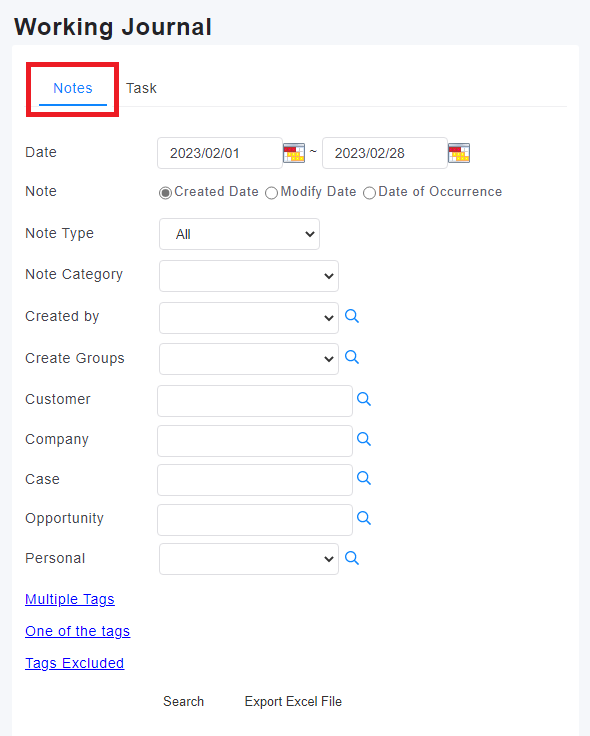You can export customer notes through [Settings]> Import/Export [Working Journal] (as shown in the figure). After filtering out the notes you want, you can export it as an Excel document.