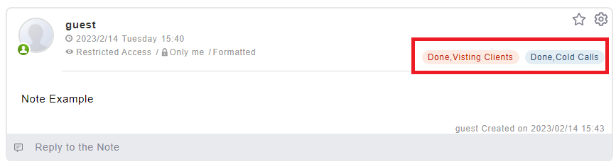 Once set, you can select note types when you enter new notes, as shown in the following figure: