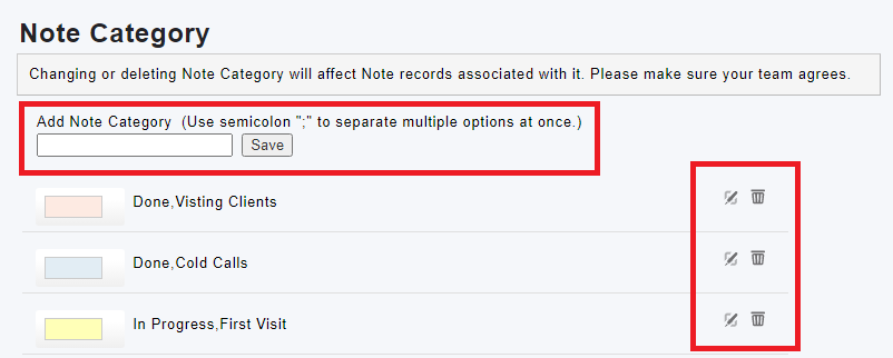 [Settings] > Customize Category [Note]. In addition, you can change colors and delete note types here.