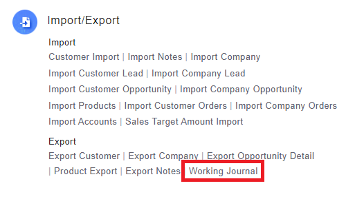 1. Go to [Settings] then select [Working journal] under [Import/Export].