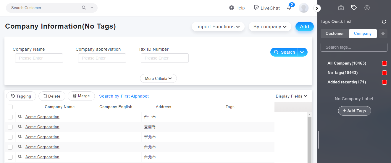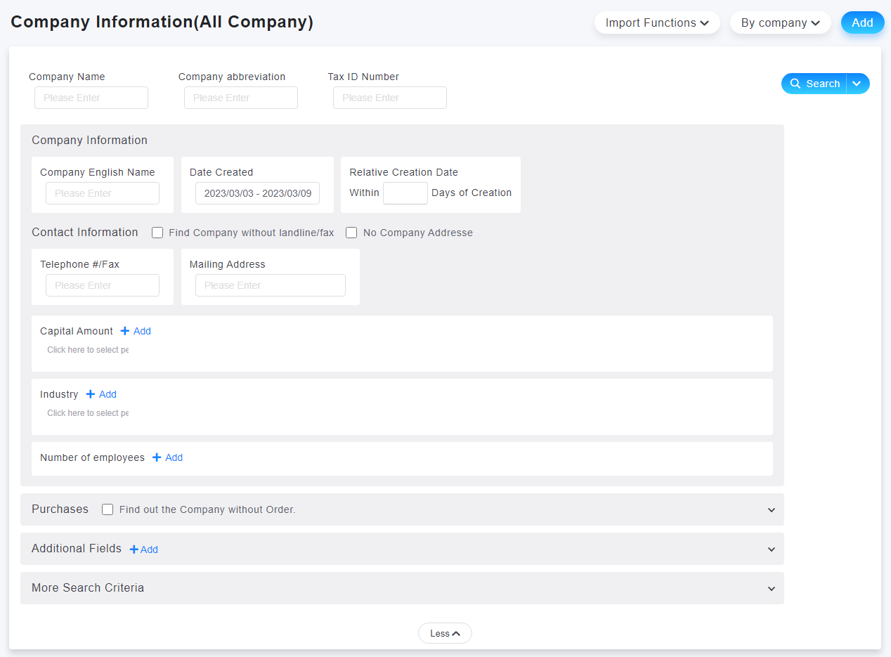 1. Go to [Company > More Criteria] to filter the company information you want to export.