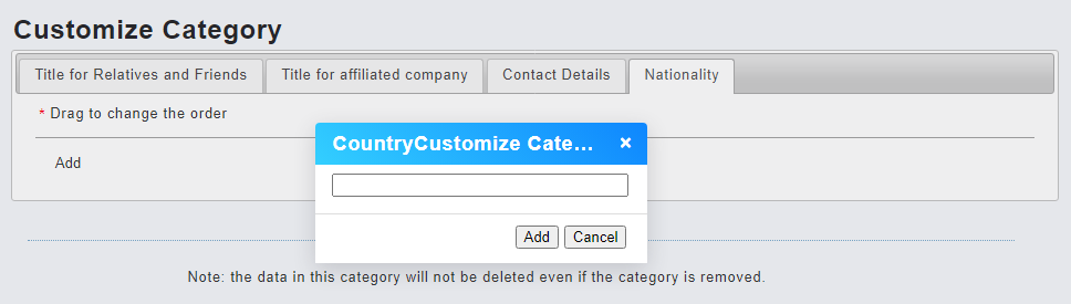 Go to [Settings > Customize Category > Nationality ] to add and edit.