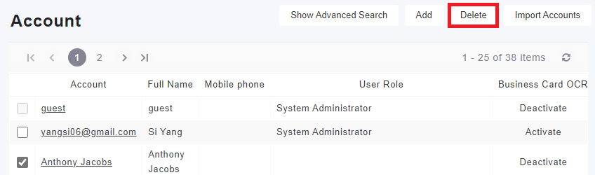 Note: Related notes will also be deleted after the account is deleted. It is recommended to deactivate the account, rather than deleting.