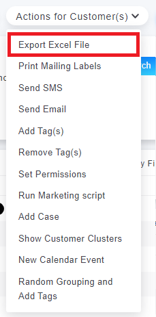 2. Click on [Actions on Customer(s) > Export Excel File] from the drop-down menu.