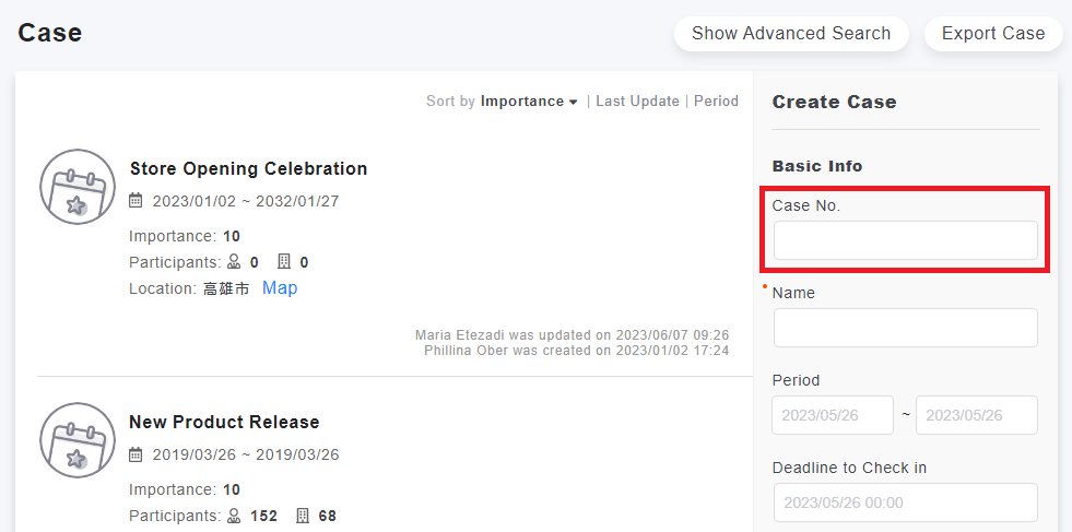 After the ID is enabled, the ID field can be specified when adding an event/case, and the related event/case can also be specified by the ID when importing potential business opportunities.