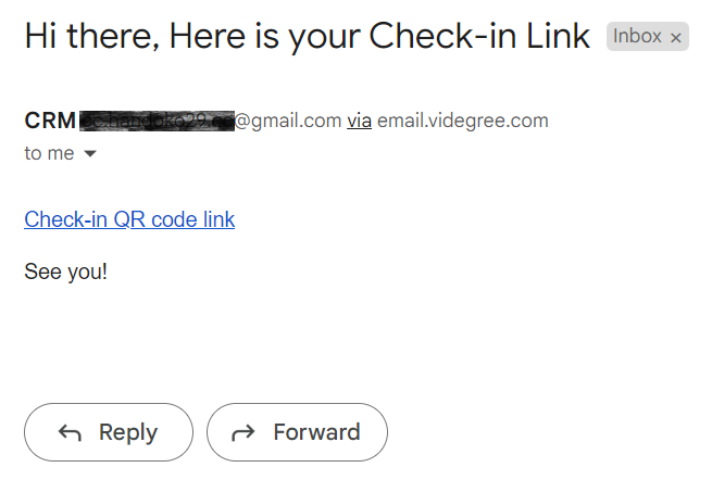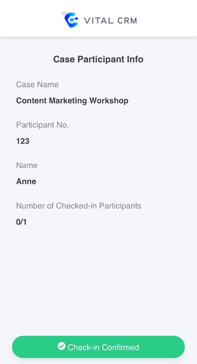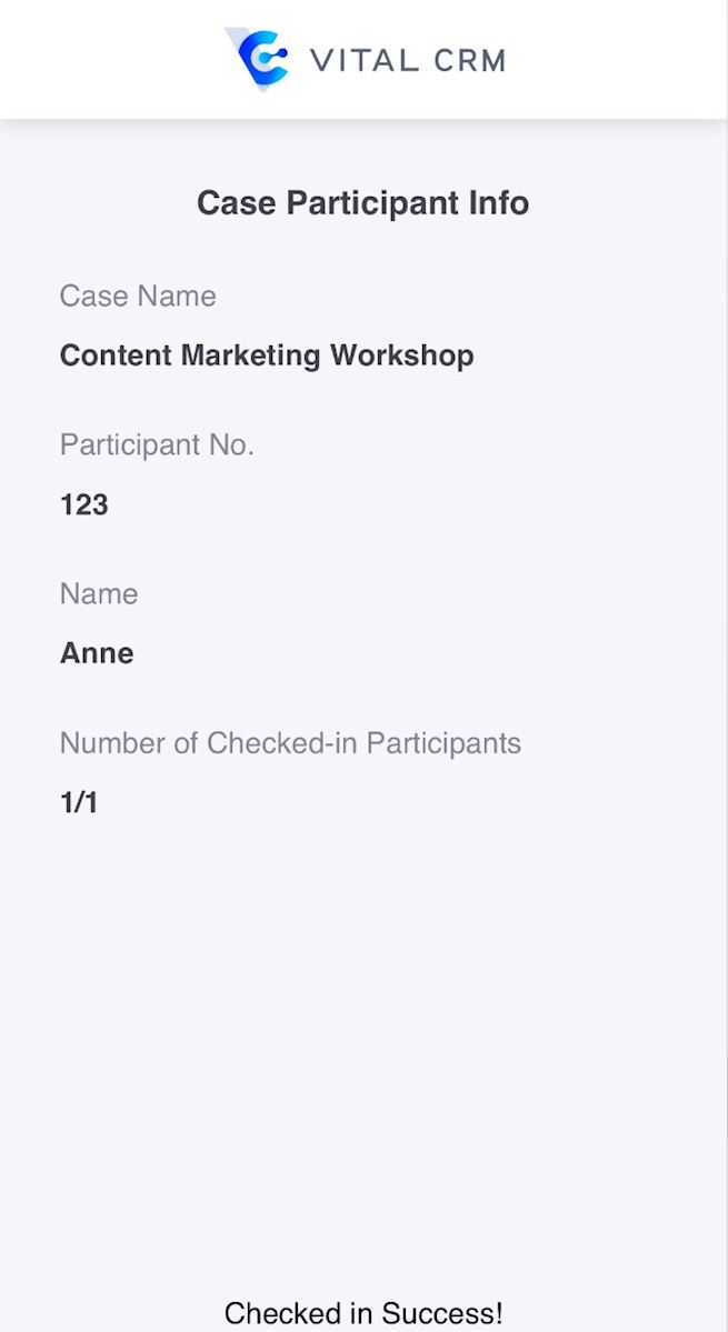 After the event personnel scan the QR code with any QR code scanning tool, they can go to the CRM check-in link (login is required later) to confirm the check-in for the client.