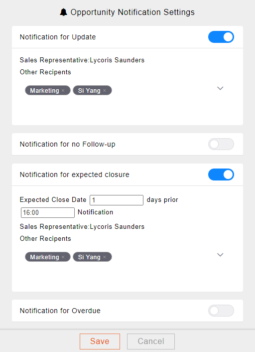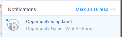 After the notification is due, a system notification and a notification letter will be received. There will be a link to the opportunity in the letter; the system notification will be displayed in the notification list in the upper right corner of CRM, and you can click to link to the detailed information screen of the opportunity.