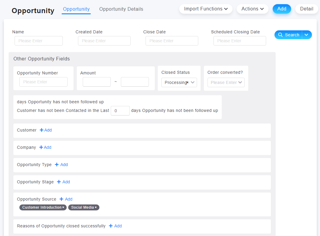 5. You can also use the source of opportunities as a search criteria to search opportunities from a specific source.