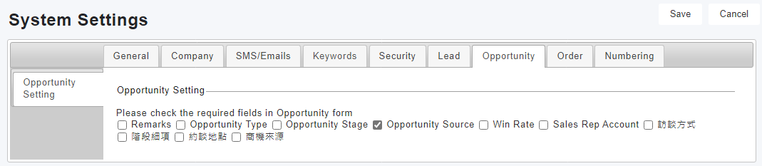 6. In [Settings > System Settings > Opportunity], you can set the opportunity source as the column to be displayed. Now you can see it on the list screen, and you can sort it.