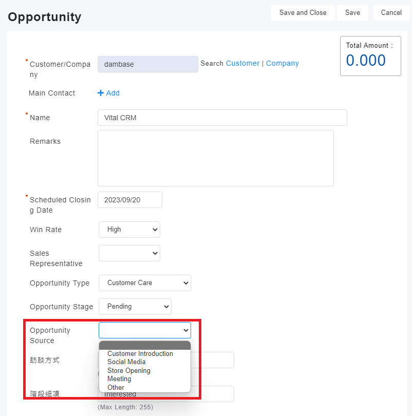 3. After adding a opportunity source, you can specify the opportunity source when editing the opportunity.