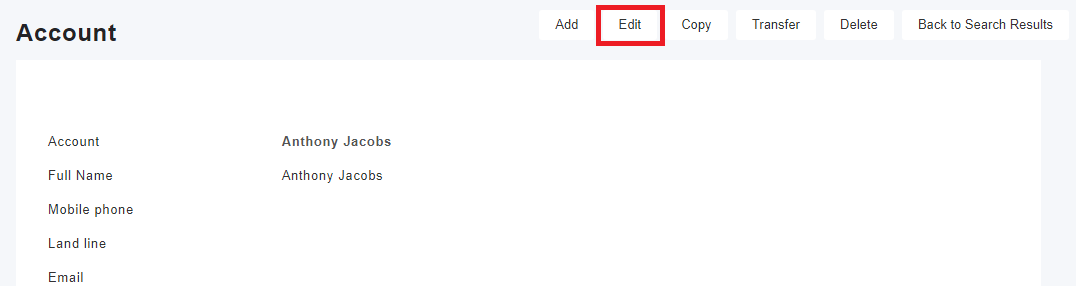 On the Accounts page, click on the account for which you want to enable the Insight Analysis module, and then click "Edit" in the upper right corner.