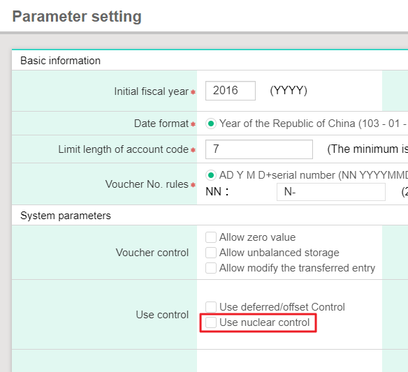 Because [ Use nuclear control] has been checked, voucher which have been sent cannot be editted or deleted. If there is only one account, it's not necessary to set up [Nuclear control] while adding and approving vouchers; therefore, please cancel the check. Please follow the steps: