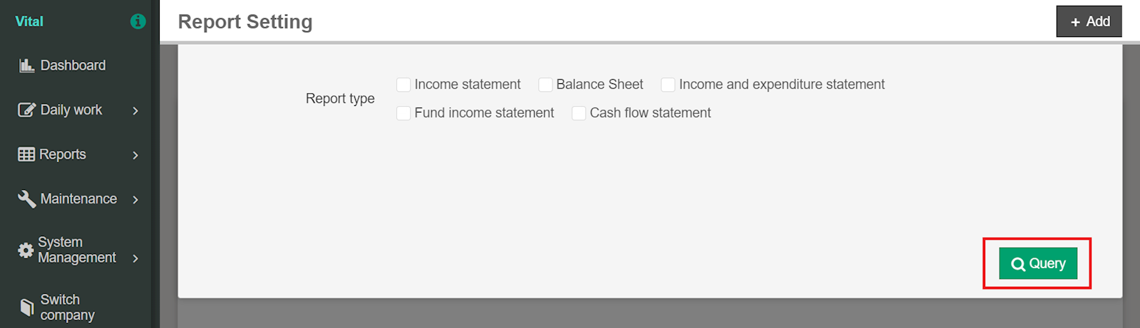 1. Go to [Maintenance] > [Report setting] > [Report setting]. After checking the report, click [Query].