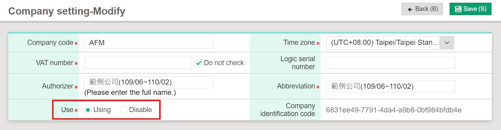 3. Check "Disable" in the "Use" column, and click [Save].