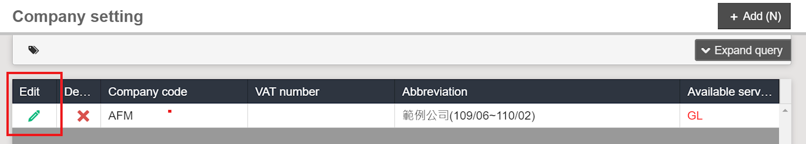 1. Go to [Maintenance] > [Company setting] and select [Query].