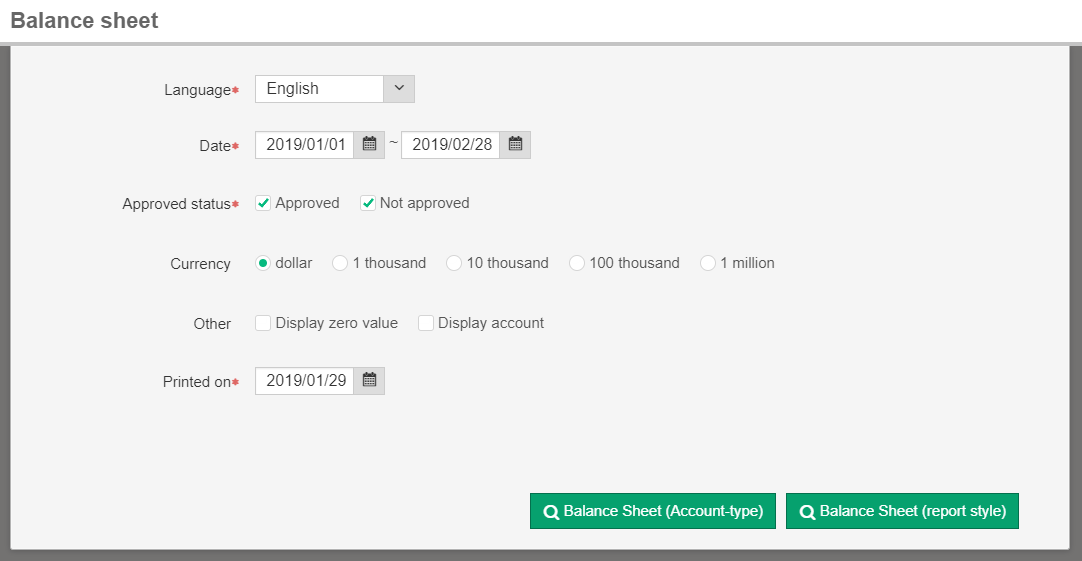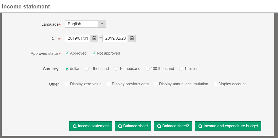 No monthly closing or annual closing: According to the conditions you input to search for information which is approved or not approved.