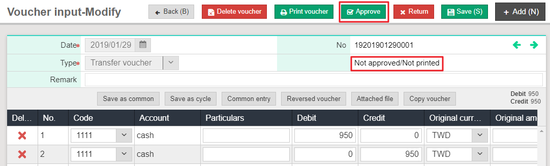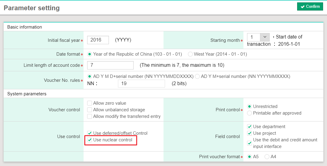 ※Not use nuclear control: If nuclear control isn't be used, the voucher you input is viewed as [approved].