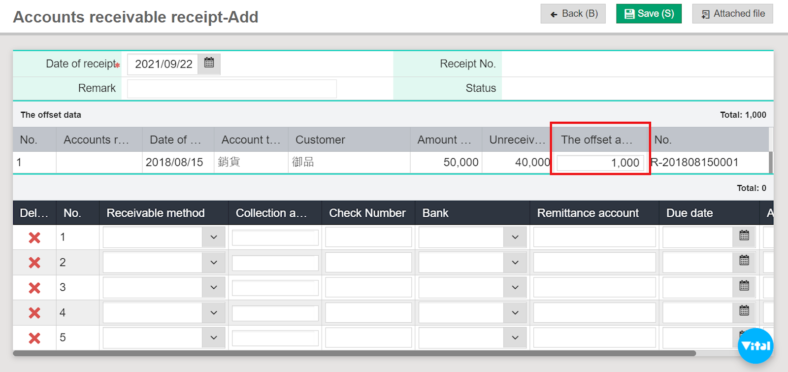 The system can automatically fill in the "offset amount" in the accounts receivable receipt.