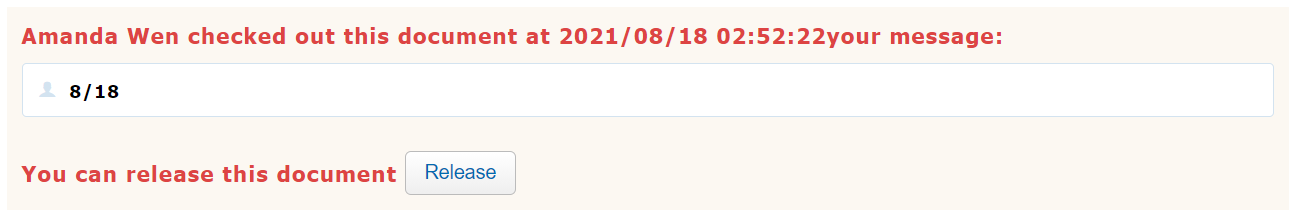 Once locked, the message below will appear, reminding the reader who locked the document, as well as when and why. In addition, the reader can also release the document (must have system admin authority).
