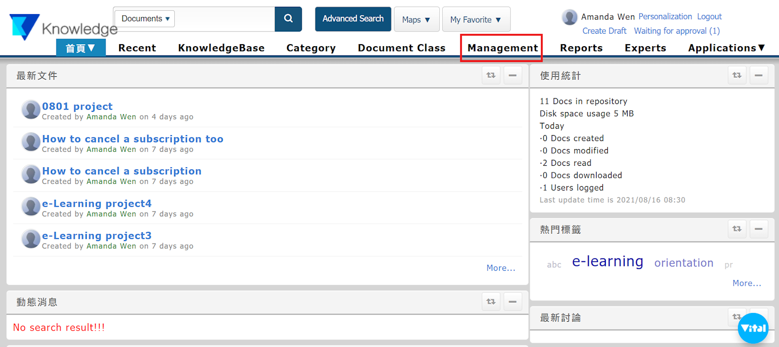 1. Once logged into the system, go to [Management] > [API].