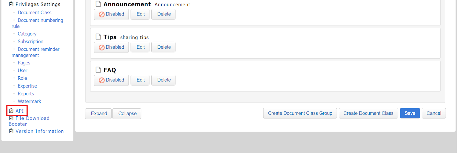 API Key settings (operated by admin)