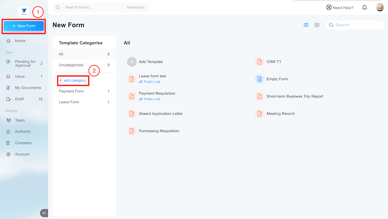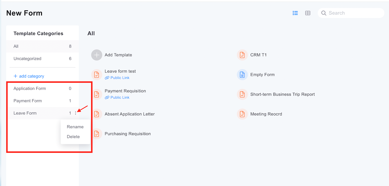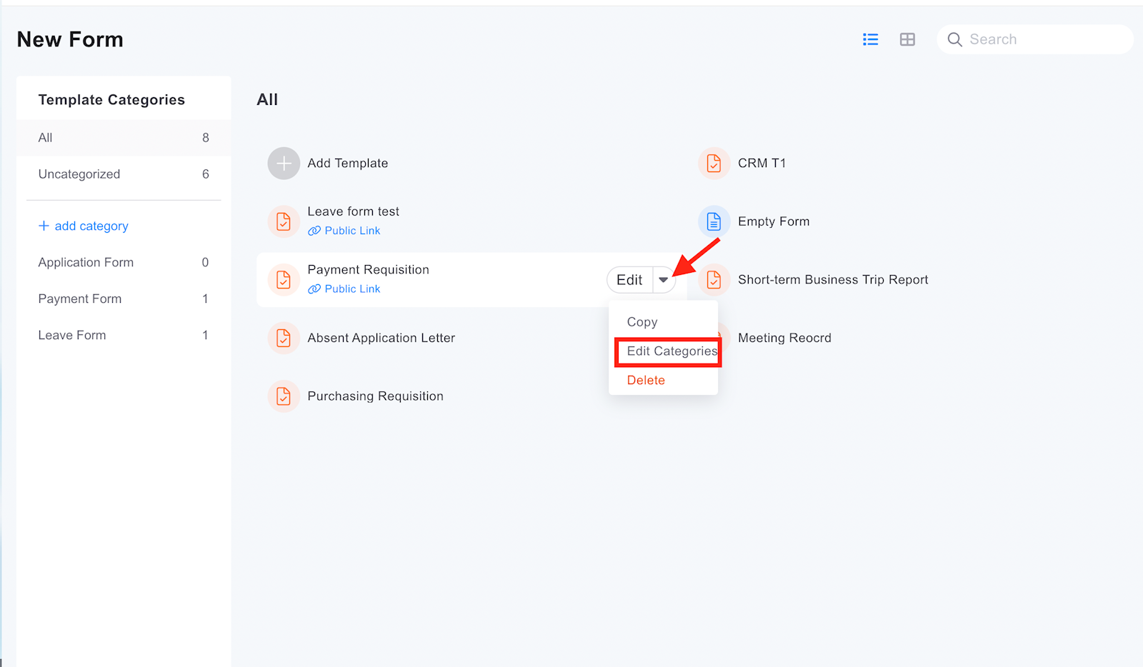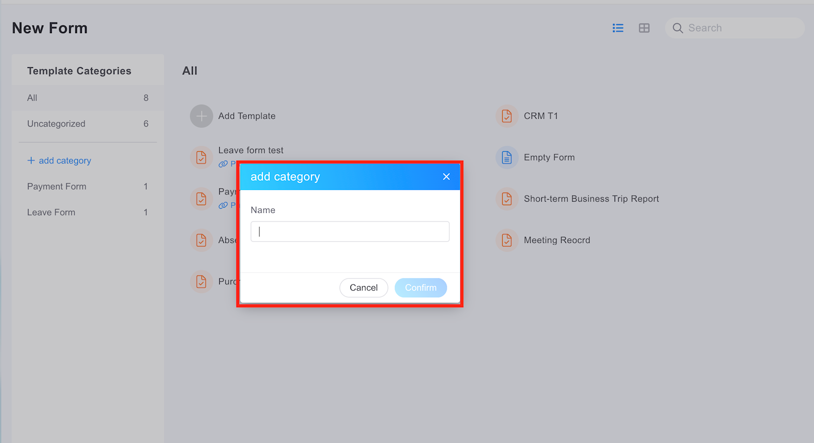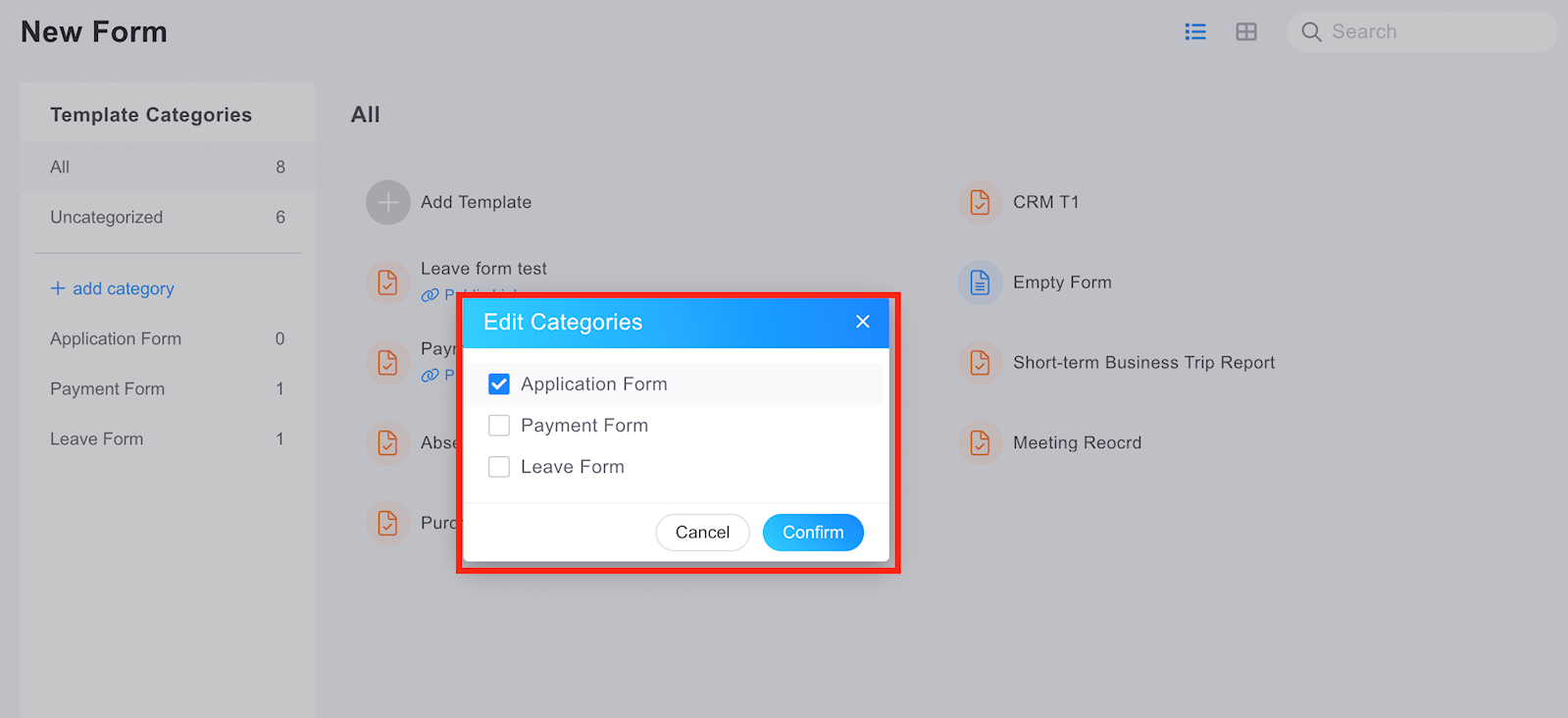 You can tick the category of the form and click [Confirm] button to put the form into the category you assigned.