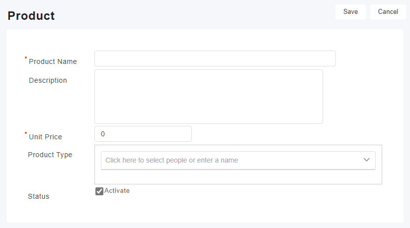 (2) Click [Add] and fill out the required fields, then click [Save] to add your new product. (Please note red*fields must be filled)
