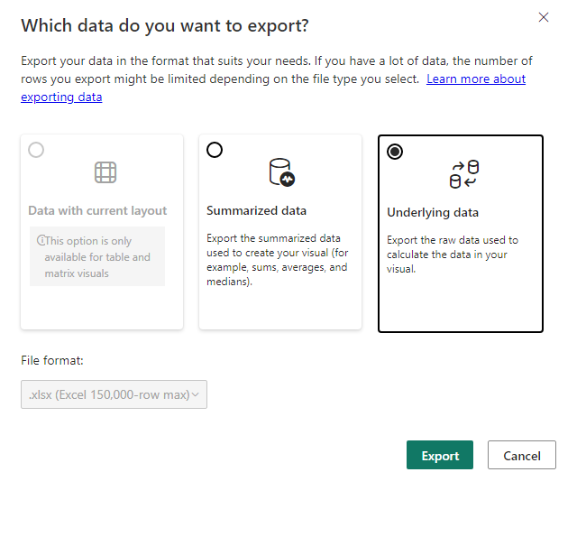 You can choose to export "Summary Data" or "Underlying Data", click [Export] in the lower right corner, and you will get an excel file.