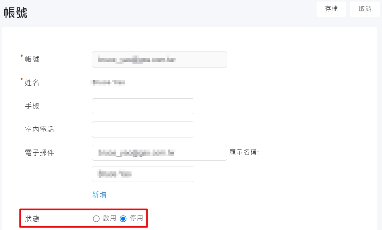 (下圖:將原帳號停用)