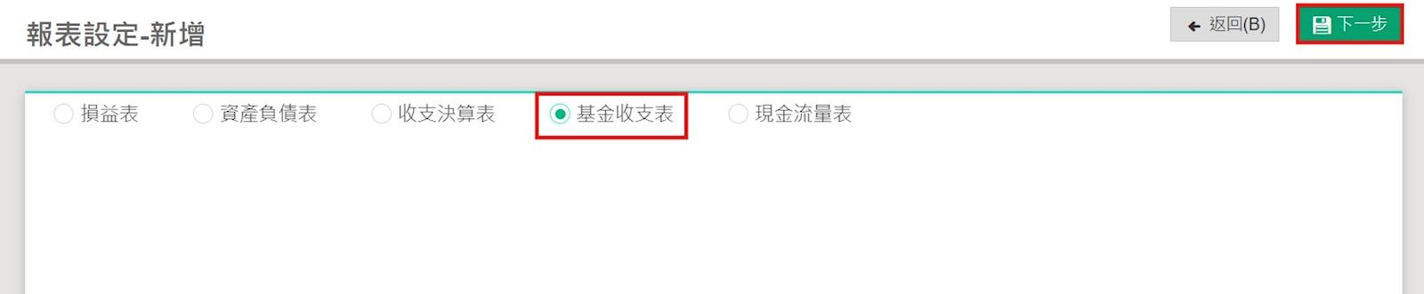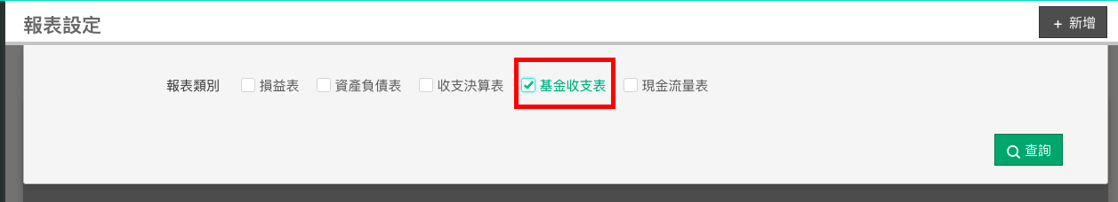 2. 勾選【基金收支表】並點選右上角的【新增】。