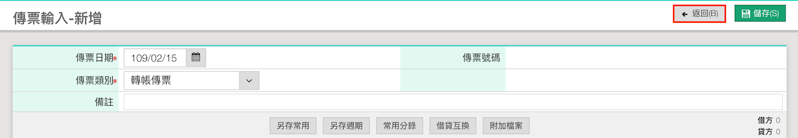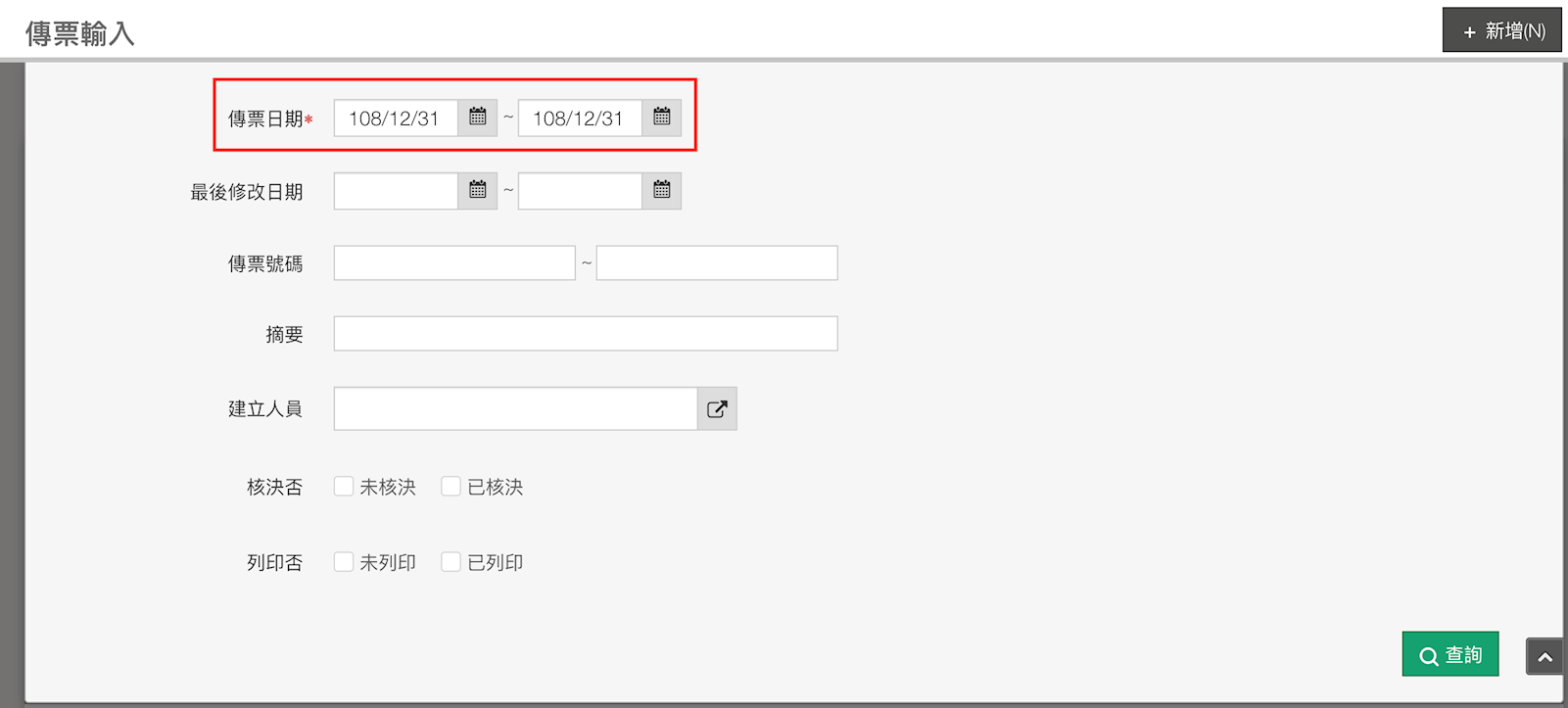 請至【日常作業>傳票輸入】,按下右上方的「返回」後,展開查詢,在傳票日期輸入條件為12/31。