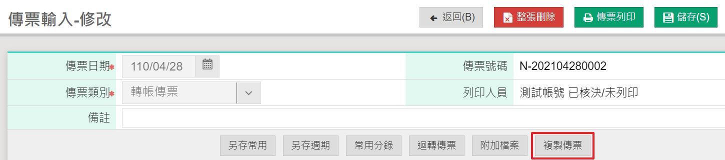 您可以點選您想複製的傳票,並點選【複製傳票】。