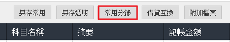 3. 日後在輸入傳票時,即可從常用分錄中選取該項目,快速輸入傳票