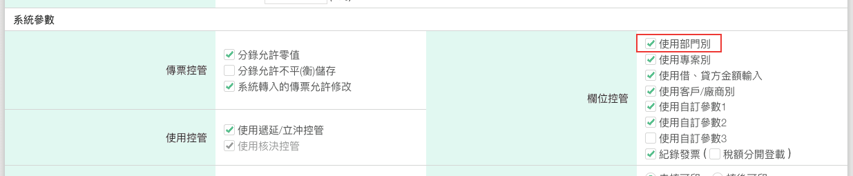 2.會計科目請必須勾選「允許部門(自填)」如果每個會計科目都需要下拉部門,就必須逐一設定會計科目