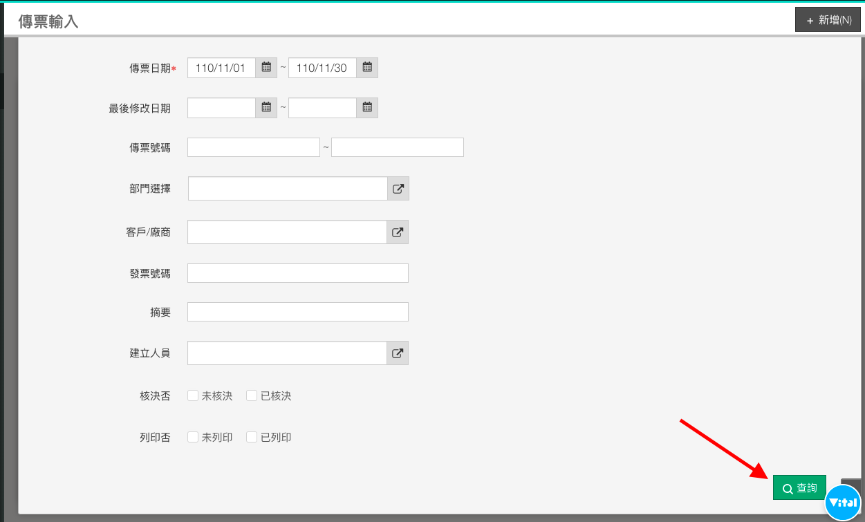 進入查詢畫面後,依您的需求設定篩選條件。設定完成,按下右下角「查詢」,查詢出傳票。