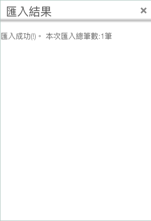 7. 點選確認後,會跳出匯出結果的視窗,會顯示是否匯入成功,若匯入失敗,會顯示失敗的原因。