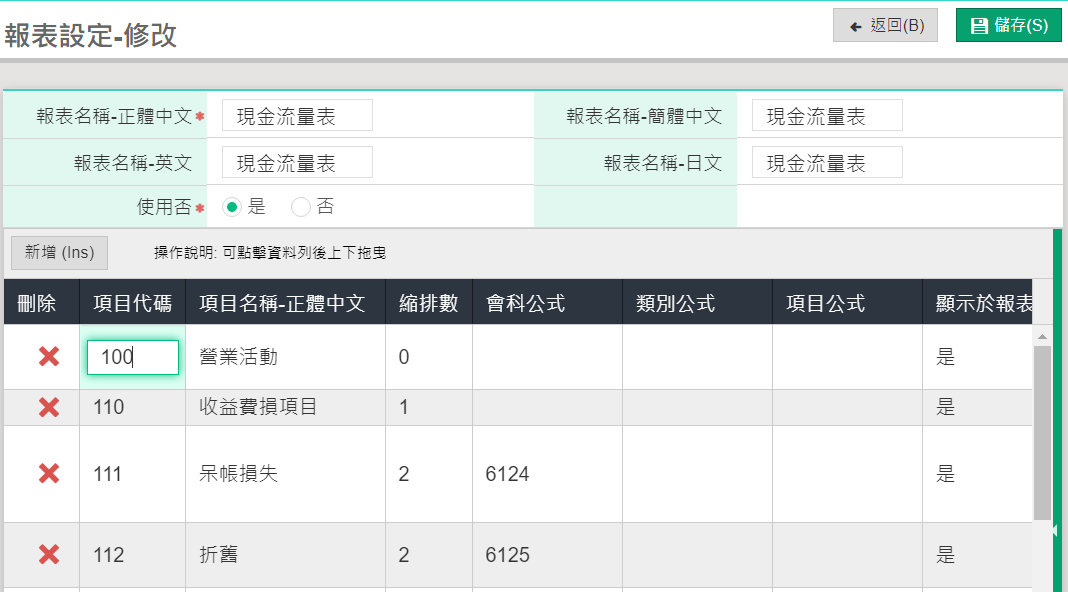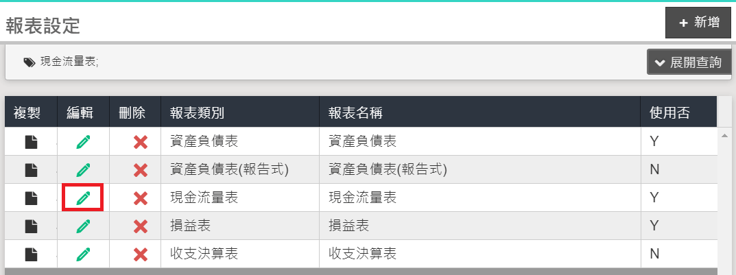現金流量表報表設定說明