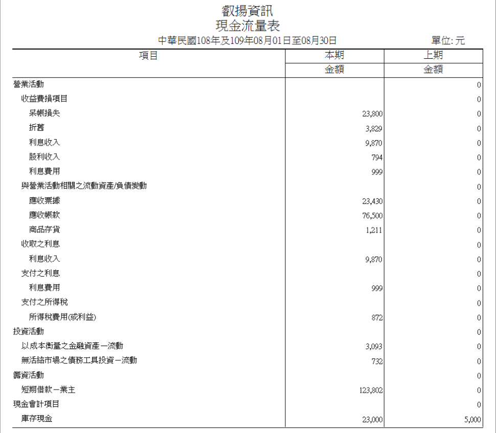 作業位置:報表作業 / 會計日常傳票 / 現金流量表